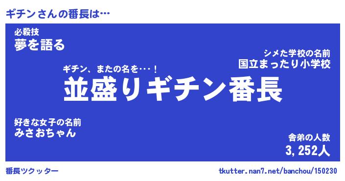 | ピコ太郎風あだ名 | 『ギコ八郎』『ピギ次郎』『ギチ二郎』 |