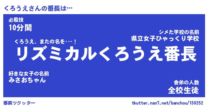 | 意味不明あだ名 | 『ペロリンくろうえ』『永久保存くろうえ』 |