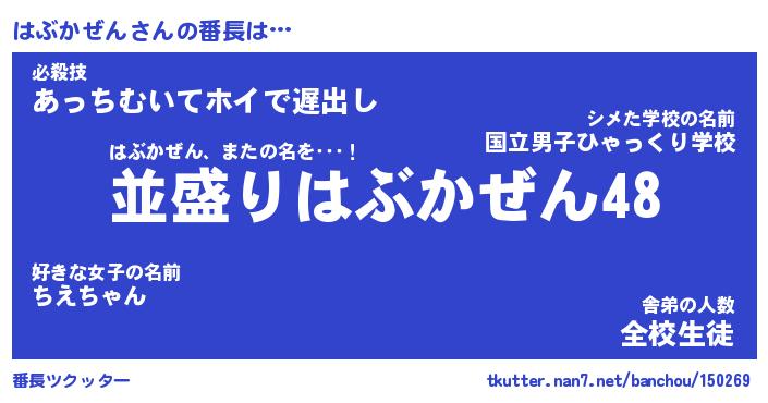| 肩書あだ名 | 『はぶかぜん店長』『はぶかぜん大統領』 |