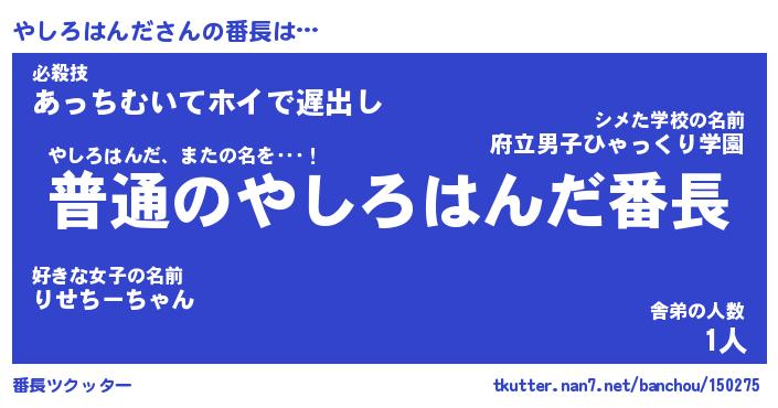 | ピコ太郎風あだ名 | 『ヤコ十郎』『ピヤ八郎』『ヤシ次郎』 |