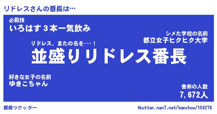 | 意味不明あだ名 | 『ペロリンリドレス』『永久保存リドレス』 |