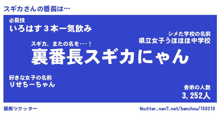 | 意味不明あだ名 | 『ペロリンスギカ』『スギカフォーエバー』 |