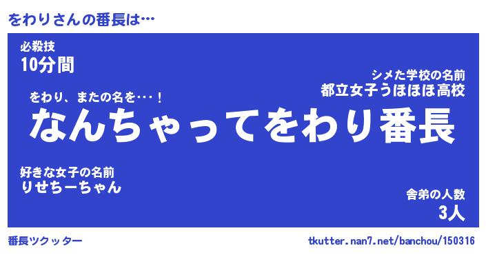 | ヒーロー風カッコイイあだ名 | 『スーパーヲワリ』『ウルトラをわりマン』 |