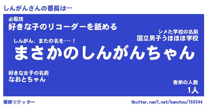 | 意味不明あだ名 | 『ペロリンしんがん』『永久保存しんがん』 |
