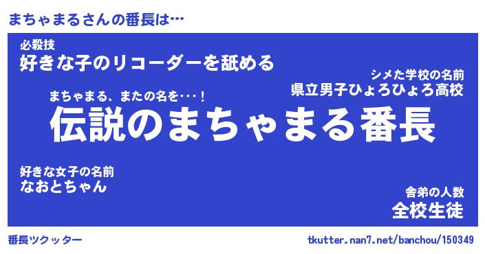 | 肩書あだ名 | 『まちゃまる店長』『まちゃまる総理大臣』 |