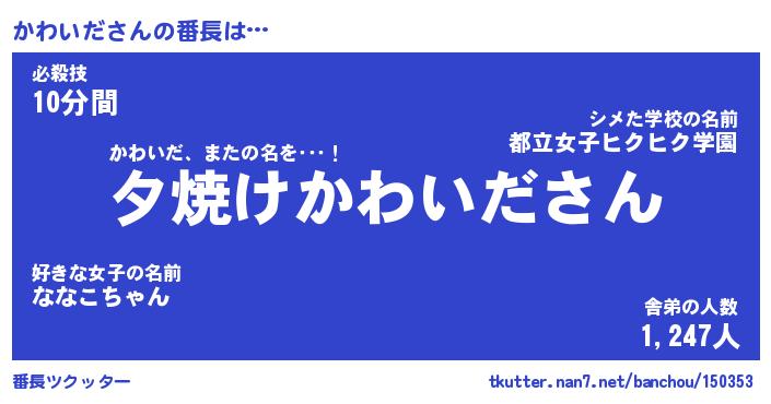 | ファンタジー風あだ名 | 『カワフェル』『エターナルカワイダー』 |