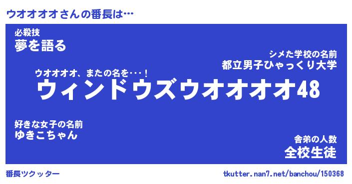 | ピコ太郎風あだ名 | 『ウコ一郎』『ピウ太郎』『ウオ六郎』 |