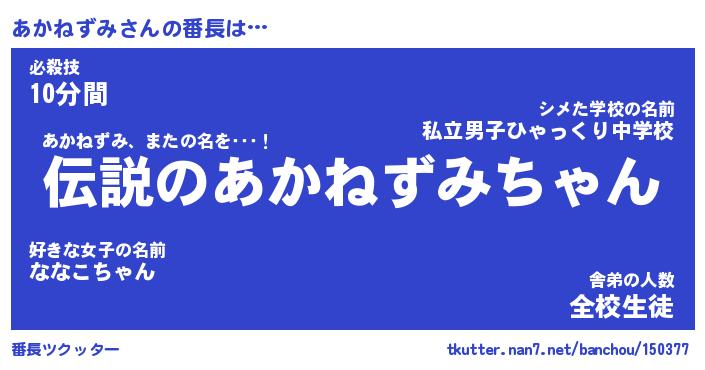 | ヒーロー風カッコイイあだ名 | 『スーパーアカネズミ』『魔戒騎士アカ』 |