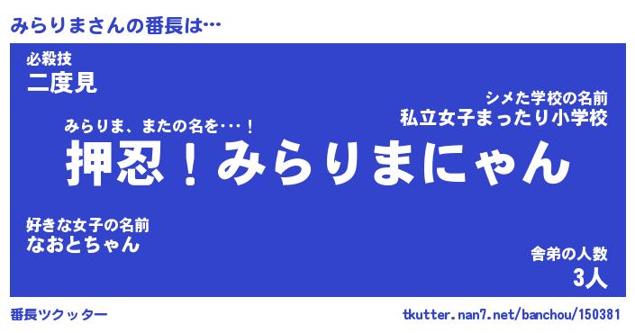 | 意味不明あだ名 | 『ペロリンみらりま』『永久保存みらりま』 |