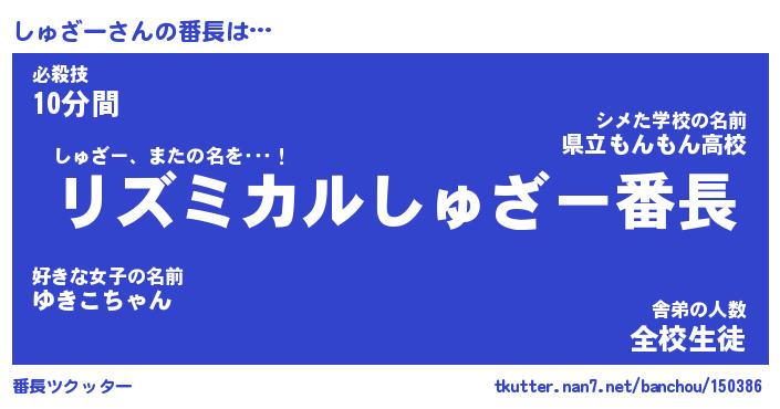 | 伝説のあだ名 | 『伝説のスナイパーしゅざー』 |
