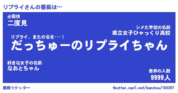| ファンタジー風あだ名 | 『リプフェル』『エターナルリプライー』 |
