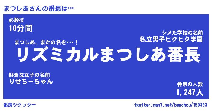| 意味不明あだ名 | 『ペロリンまつしあ』『永久保存まつしあ』 |