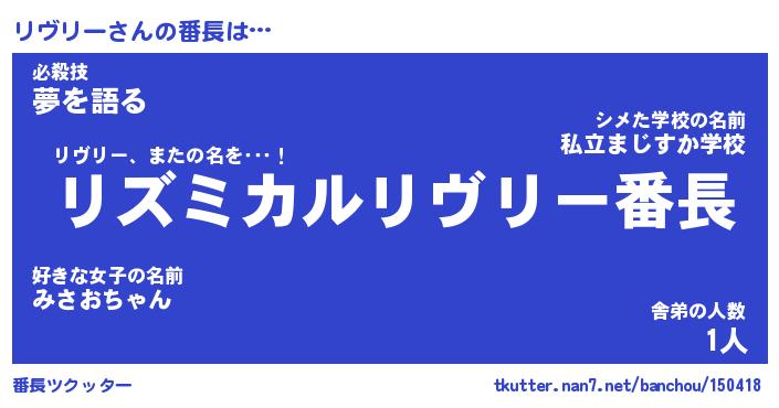 | 肩書あだ名 | 『リヴリー店長』『リヴリー総理大臣』 |
