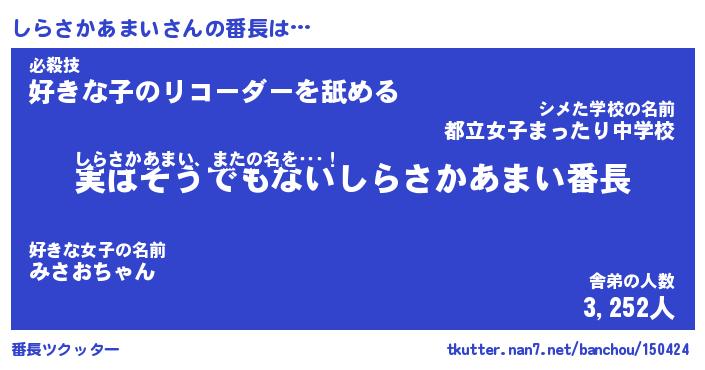 | 伝説のあだ名 | 『封印されしスナイパーしらさかあまい』 |