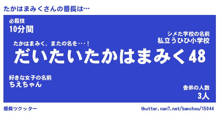 | 2回繰り返すあだ名 | 『たかたか』『たたかか』『おやおや』 |