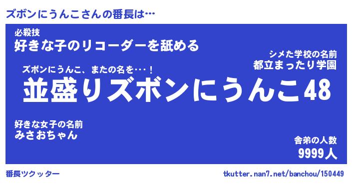| ヒーロー風カッコイイあだ名 | 『スーパーズボンニウンコ』 |