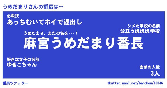 | ヒーロー風カッコイイあだ名 | 『スーパーウメダマリ』『天弓騎士ウメ』 |