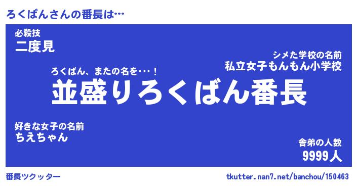| 意味不明あだ名 | 『ペロリンろくばん』『永久保存ろくばん』 |