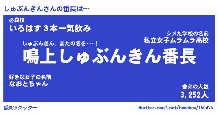 | ヒーロー風カッコイイあだ名 | 『スーパーシュブンキン』『幻影騎士シュ』 |