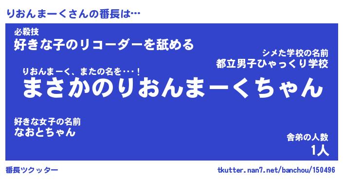 | 伝説のあだ名 | 『伝説のスナイパーりおんまーく』 |
