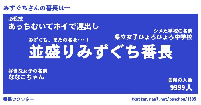 | ピコ太郎風あだ名 | 『ミコ次郎』『ピミ一郎』『ミズ十郎』 |