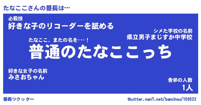 | 肩書あだ名 | 『たなここ店長』『たなここ国家主席』 |