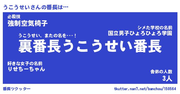 | ファンタジー風あだ名 | 『ウコフェル』『エターナルウコウセイー』 |