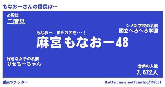 | ファンタジー風あだ名 | 『モナフェル』『エターナルモナオーー』 |