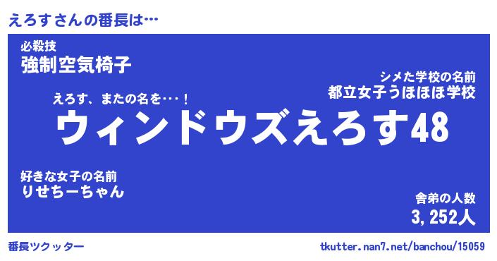 | 肩書あだ名 | 『えろす店長』『えろす大統領』 |