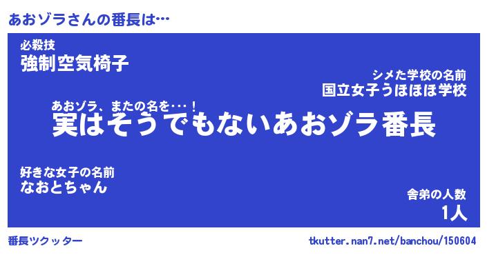 | 伝説のあだ名 | 『封印されしスナイパーあおゾラ』 |