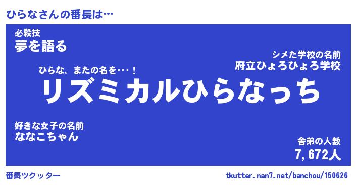 | 意味不明あだ名 | 『ペロリンひらな』『ひらなフォーエバー』 |