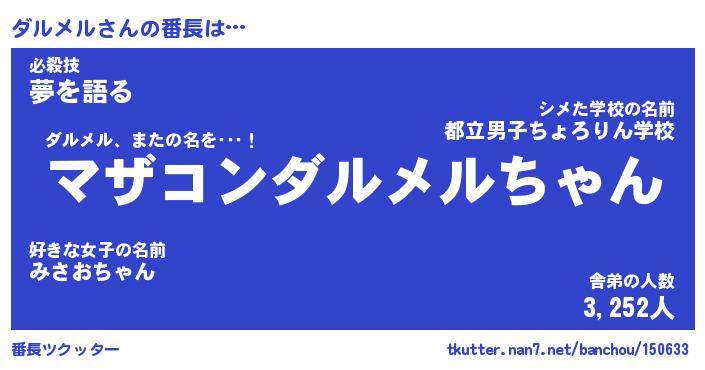 | ファンタジー風あだ名 | 『ダルフェル』『エターナルダルメルー』 |