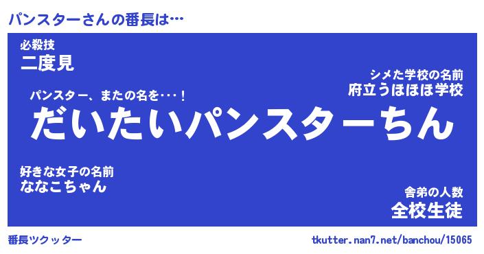 | 男性向けラノベタイトル風あだ名 | 『パンスターの憂鬱』 |