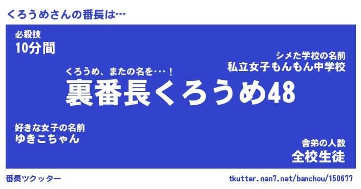 | ヒーロー風カッコイイあだ名 | 『スーパークロウメ』『魔戒騎士クロ』 |