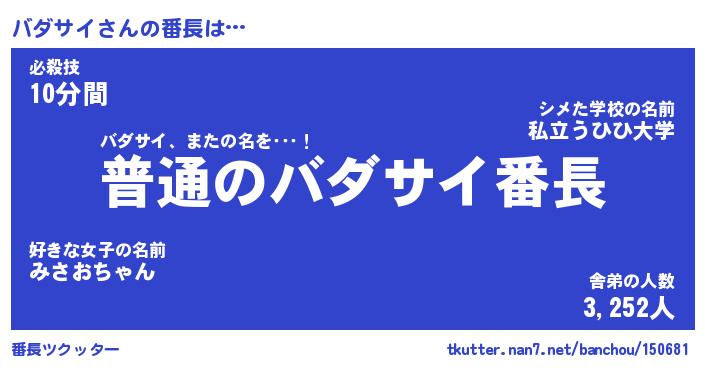 | 意味不明あだ名 | 『ペロリンバダサイ』『永久保存バダサイ』 |