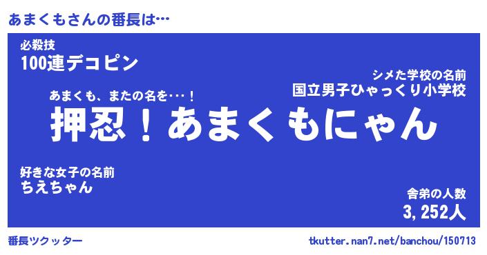 | ヘコむあだ名 | 『あまっふぃ~』『つくし』『あまを』 |