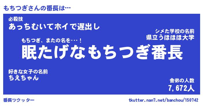 | ファンタジー風あだ名 | 『モチフェル』『エターナルモチツギー』 |