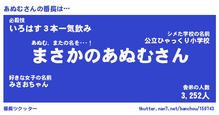 | ヘコむあだ名 | 『あぬもー』『豆乳』『あぬを』 |