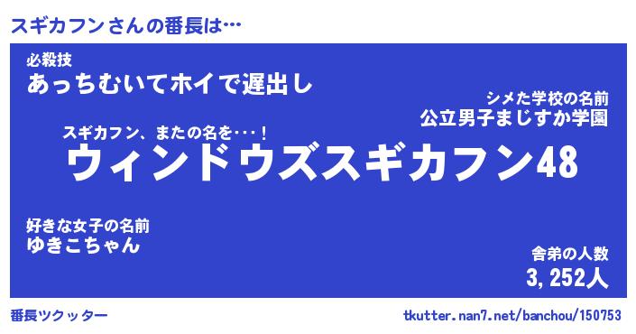 | ヒーロー風カッコイイあだ名 | 『スーパースギカフン』『幻影騎士スギ』 |