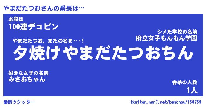 | ヒーロー風カッコイイあだ名 | 『スーパーヤマダタツオ』『黄金騎士ヤマ』 |