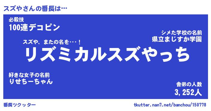 | ヘコむあだ名 | 『スズふぇ~』『酢こんぶ』 |
