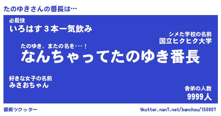 | ヒーロー風カッコイイあだ名 | 『スーパータノユキ』『天弓騎士タノ』 |