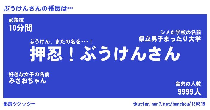 | ヒーロー風カッコイイあだ名 | 『スーパーブウケン』『天弓騎士ブウ』 |