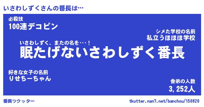 | ピコ太郎風あだ名 | 『イコ四郎』『ピイ二郎』『イサ太郎』 |