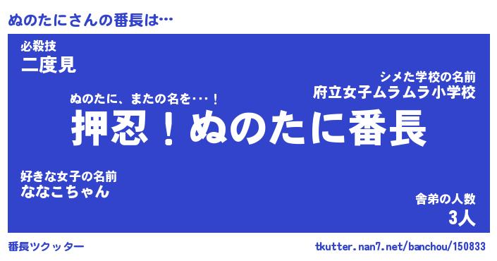 | ピコ太郎風あだ名 | 『ヌコ二郎』『ピヌ次郎』『ヌノ一郎』 |