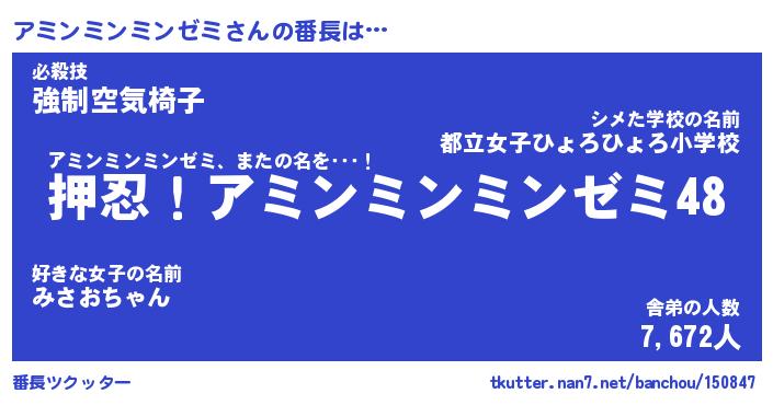 | 男性向けラノベタイトル風あだ名 | 『アミンミンミンゼミアートオンライン』 |