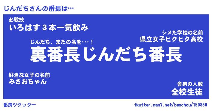 | 意味不明あだ名 | 『ペロリンじんだち』『永久保存じんだち』 |