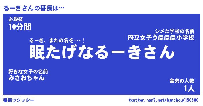 | 2回繰り返すあだ名 | 『るーるー』『るるーー』『うるうる』 |