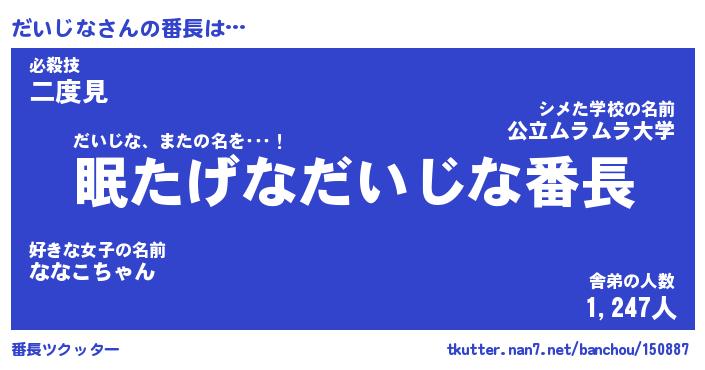 | 2回繰り返すあだ名 | 『だいだい』『だだいい』『ぽきぽき』 |