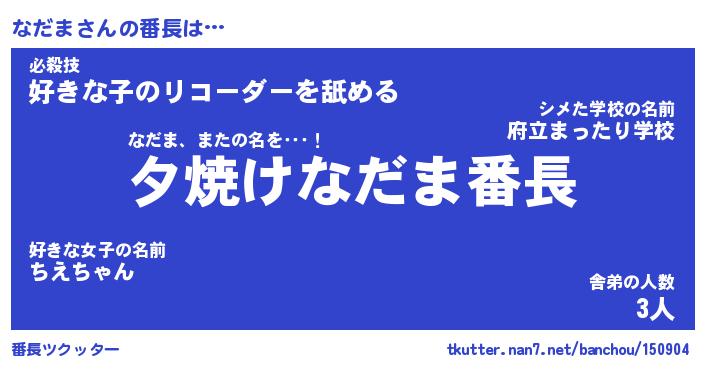 | ヒーロー風カッコイイあだ名 | 『スーパーナダマ』『ウルトラなだまマン』 |